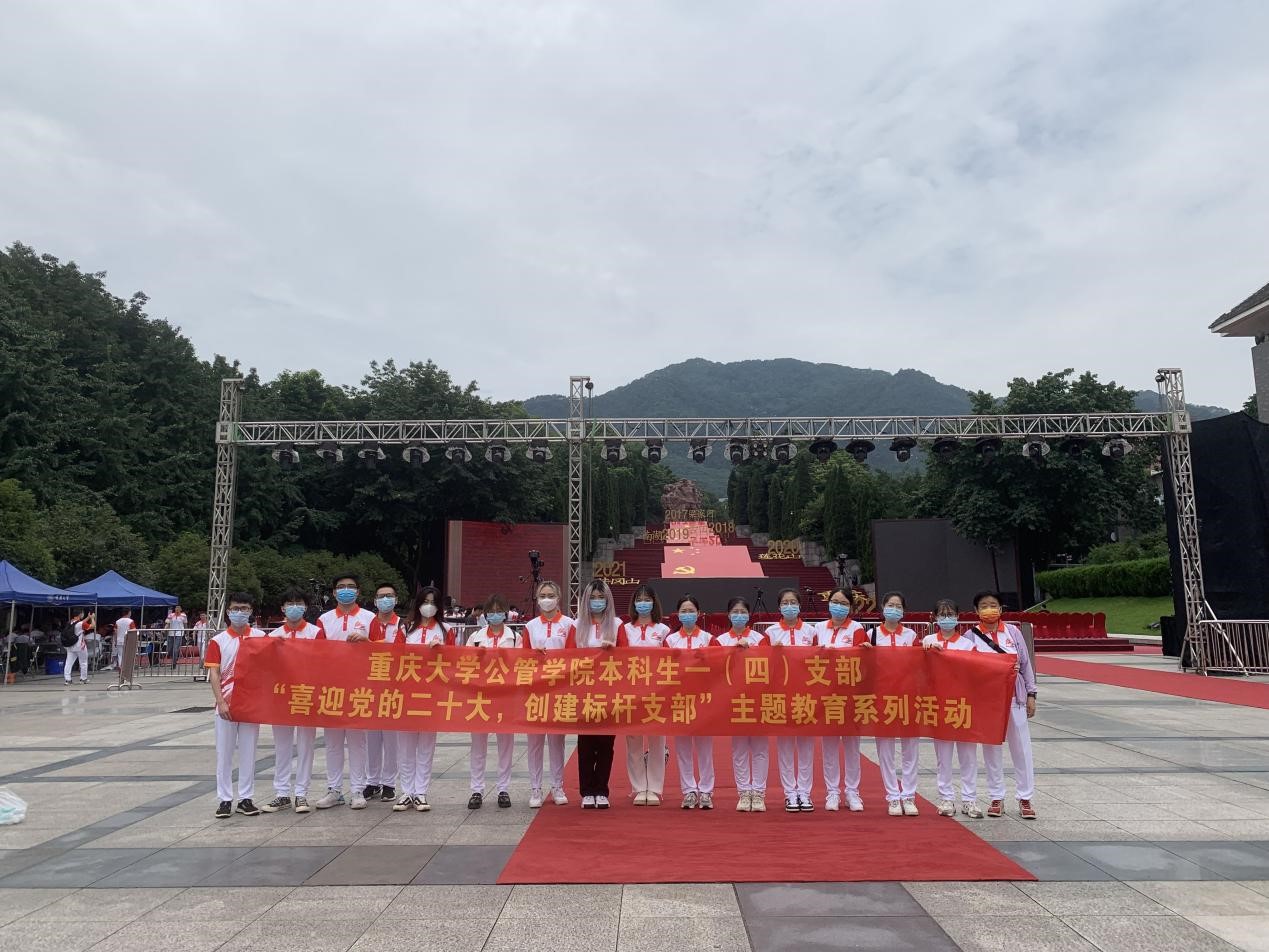 本科生一、四支部17位党员代表前往重庆红岩魂广场,参加“喜迎党的二十大,创建标杆支部”主题教育系列活动之“青年红色筑梦之旅”活动启动仪式的彩排活动,并于6月17日上午9点30正式参加启动仪式。活动由本科生一支部书记王丽娟同志带队,持续到17日中午结束。