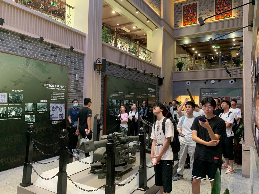 2023420日下午,师生前往重庆市人民防空宣传教育馆进行参观学习。重庆市人民防空宣传教育馆坐落于重庆市渝中区虎头岩公园,由一个地上人防科普主展区和军事瞭望台、地下军事要塞展示区组成,是重庆中心城区最大的人民防空宣教馆。