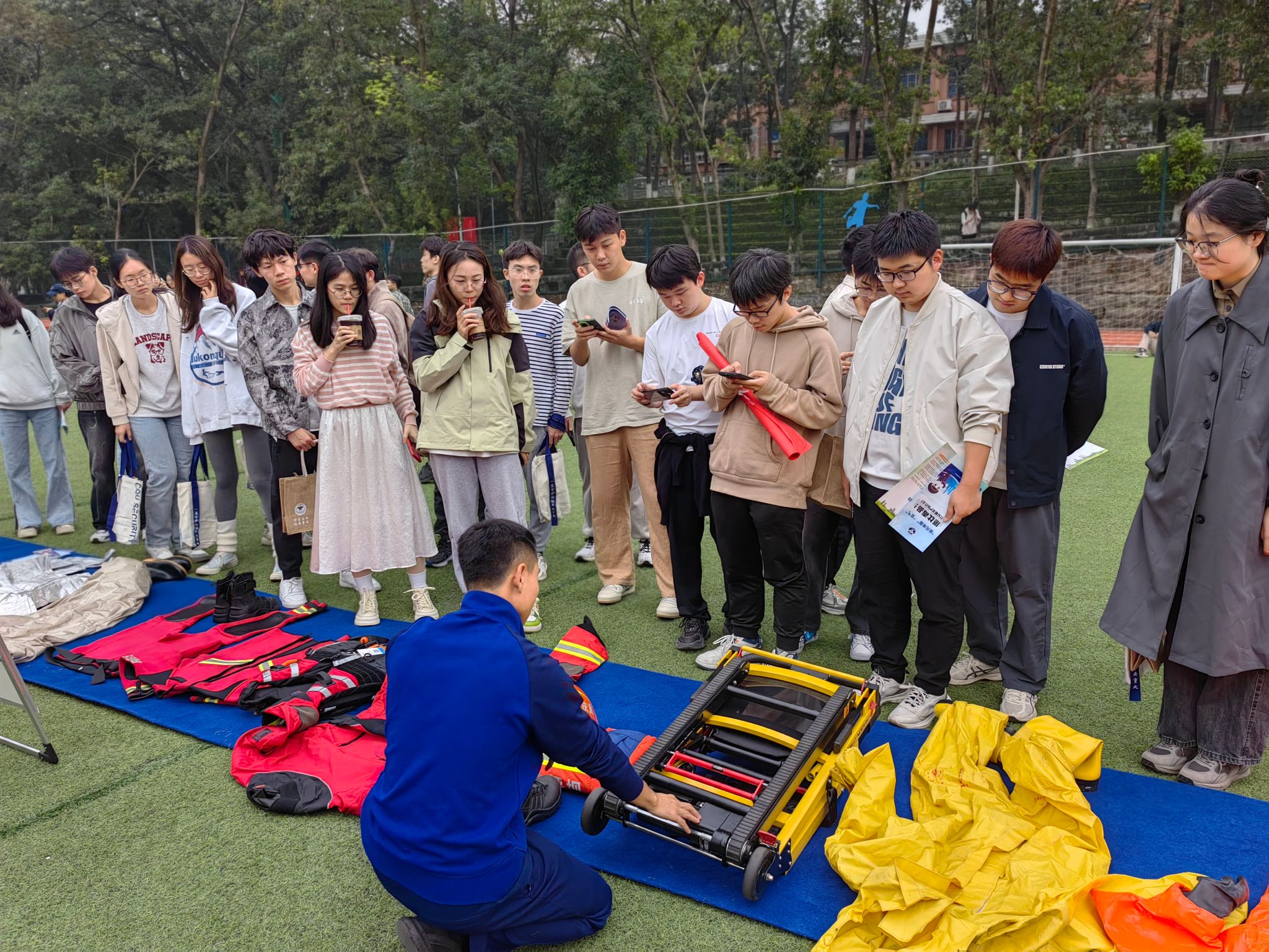 本次活动学校邀请到公安特警、消防战士面向师生开展消防灭火、防诈防骗、反恐防爆等安全知识宣传教育。活动现场设置了特种车辆展示区、模拟烟雾逃生体验馆、反恐防暴宣传区、枪械及防身武器展示等活动区域,在场民警和消防员从特定工具使用知识到实景模拟体验逃生,从理论到实践,全方位、多角度地为师生讲解应该如何提升意外应对能力和增强个人安全意识。支部学生党员和入党积极分子们近距离学习到专业的安全知识和技能,再配合公安特警、消防战士的现场讲解和实景教学,安全教育入眼又入心。