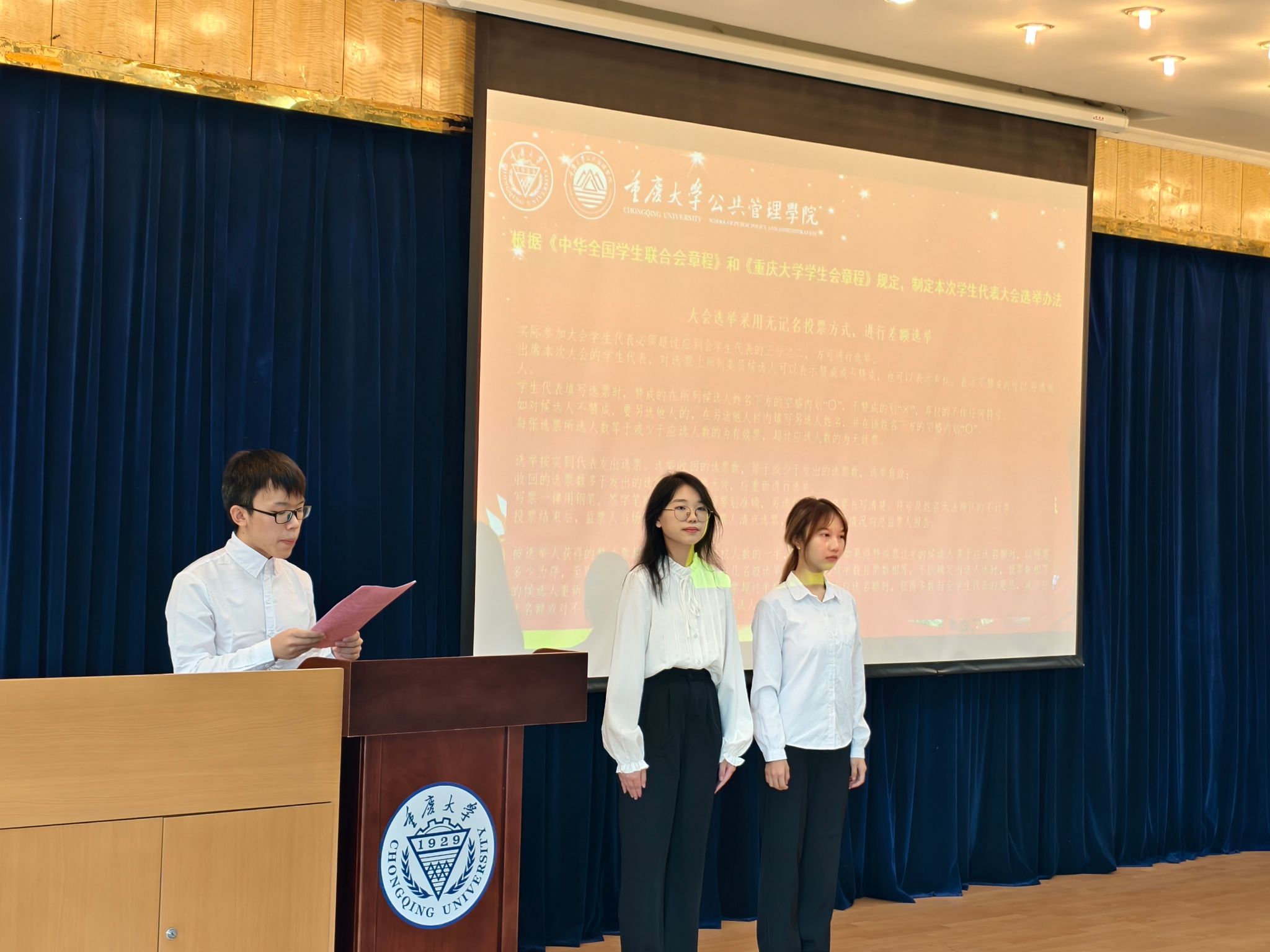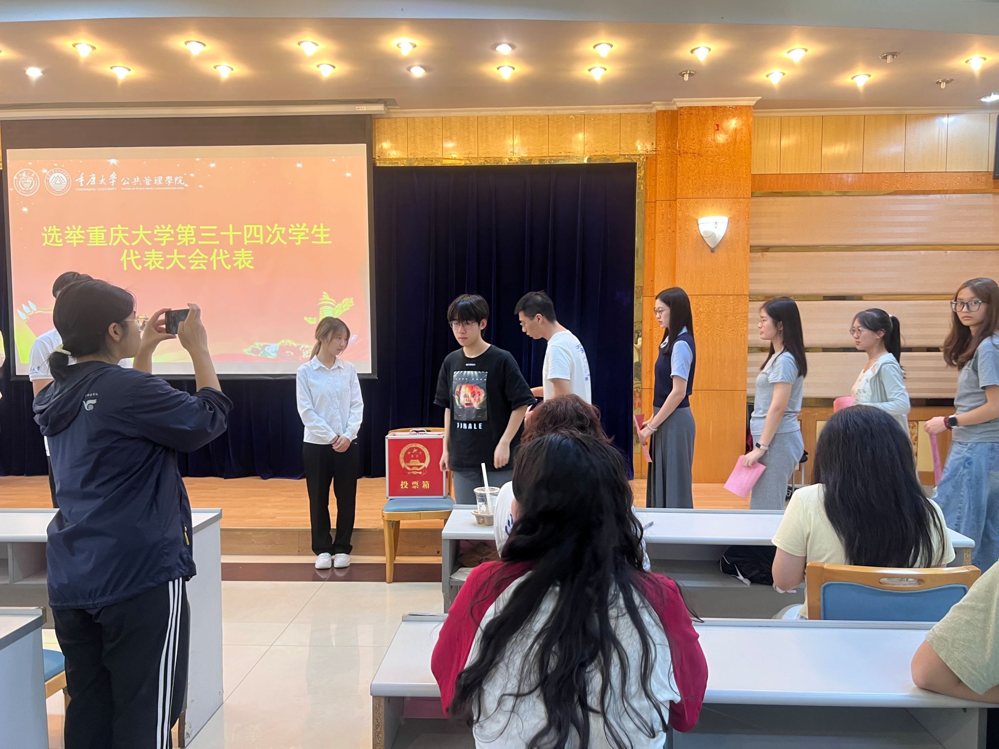投票环节结束后,计票工作随即展开。总计票人刘佳卓宣读计票结果及当选名单。代堪业、史晏宁、何雨桐、杨佳仙、罗燏杰、钟芳婷、常怡宽、黄丹怡当选为学生代表大会委员,并将代表学院参加重庆大学第三十四次学生代表大会。