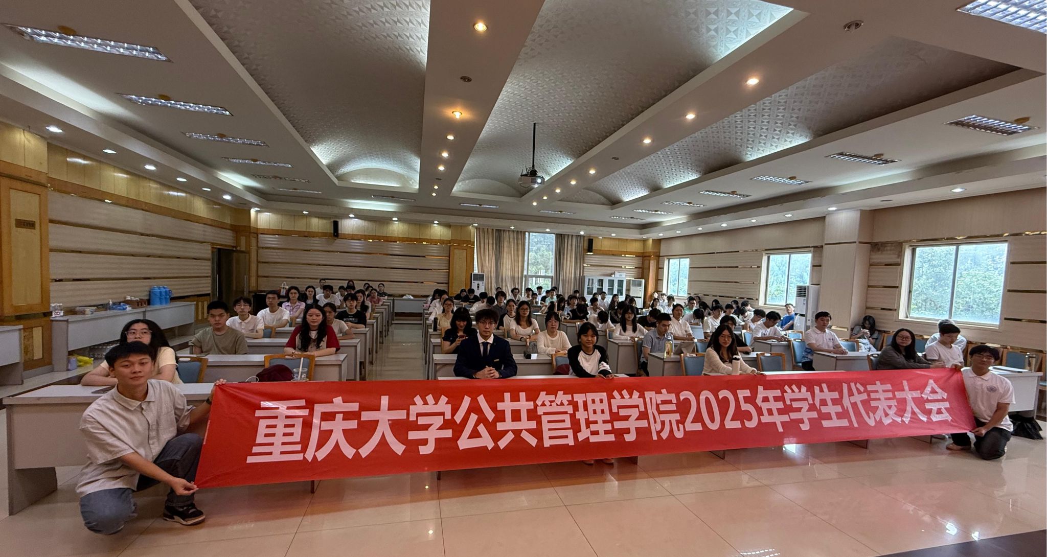 2025年本科生学生代表大会于2025年9月25日13点30分在学院202报告厅顺利召开。学院团委书记、学生会秘书长徐柳老师,以及来自2022级、2023级、2024级的103名本科生代表共同参会。