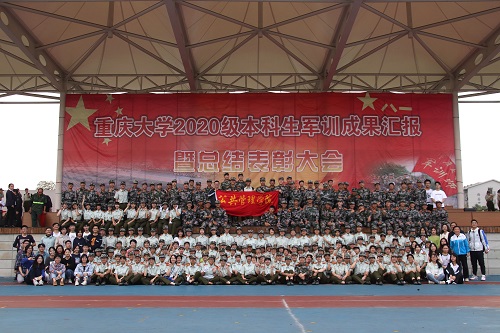 2020年9月29日下午2:30,重庆大学2020级本科生军训成果汇报暨总结表彰大会于虎溪校区风雨操场如期举行。学院男生连队主要参与擒敌拳的表演,女生连队主要参与队列操的表演。学院副书记袁晓浩、学办主任兼19级辅导员王丽娟、研究生兼职辅导员谢镇江以及学院19级团委学生会成员出席并观看本次大会,一同目睹公管学子的风采。