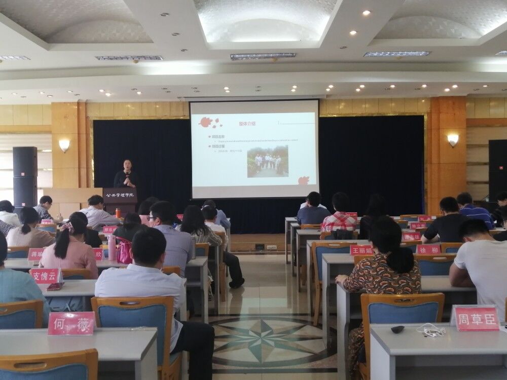 党委组织全体教职员工在学院多功能厅进行政治学习。学院青年教师郭英慧与大家交流挪威访学的过程和心得体会。学院党委书记张邦辉主持学习。