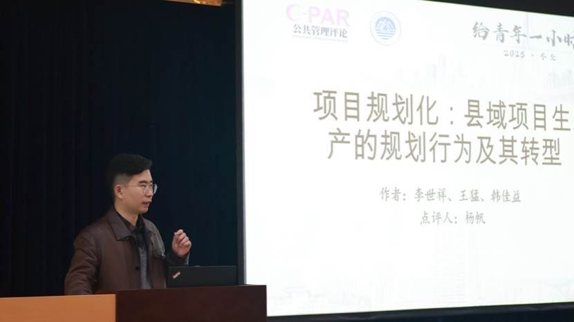 王一帆与北京大学政府管理学院马亮合作的论文《袖手旁观与各让一步?政策执行中的“默契”行为——基于W社区“禁放令”的案例研究》进行了介绍与点评。文章基于对W社区春节期间禁止燃放烟花爆竹政策执行过程中“默契”行为的深描,探究政策执行者与目标群体如何通过意义建构与互动重塑政策边界,进而影响政策执行效果。研究发现政策执行并非线性推进,而是充满非正式协商、试探与反馈的动态博弈过程;政策主体对于政策的主观解读及其在互动过程的建构是导致执行偏差的关键。陈老师指出,文章的研究贡献有待进一步明确,目前文章更多与“象征性执行”、“共谋”等理论对话,但根据现有的理论模型,案例对标的应该是“政治性执行”。文章需更深入地阐释“意义建构”与“默契”机制相较于潜在竞争性解释的理论优势。此外,现有框架图在逻辑呈现上仍有改进空间,建议重新梳理各概念要素之间的关联,并可考虑纳入关键的制度、主体或情境变量以完善分析。陈老师也就研究方法、案例选择和写作细节提出了具体建议。王一帆、马亮作者就这些问题进行回应,与会专家和作者还就文章的修改进行了讨论。